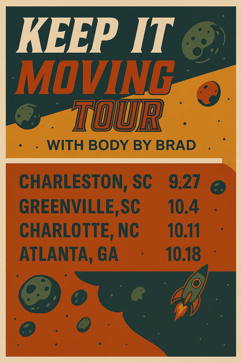 The Keep It Moving Tour is all about bringing people together and celebrating the good things in life - fitness, food, friends, and fun. More than just a workout, it’s an experience designed to build community while breaking a sweat. Each stop on the tour features a 45 minute workout led by Brad himself, blending his passion for fitness with his belief that movement should feel energizing and enjoyable. After the workout, guests get the chance to connect, refuel, win giveaways, and share in the kind of good vibes that keep you moving long after the session ends. Grab your tickets for the city closest to you below!